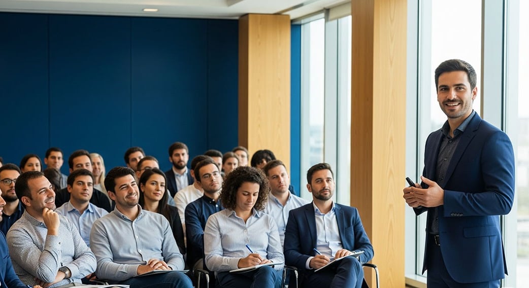 Colegas param para assistir você falar. Seu chefe te chama para apresentações importantes. Você se torna a referência em comunicação da empresa.